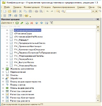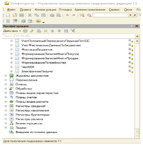 Рис. 3. Конфигурация «1С: Управление производственным предприятием».
