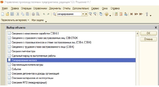 5. Fig. 4. Selecting an object in “1C: Manufacturing Enterprise Management”.