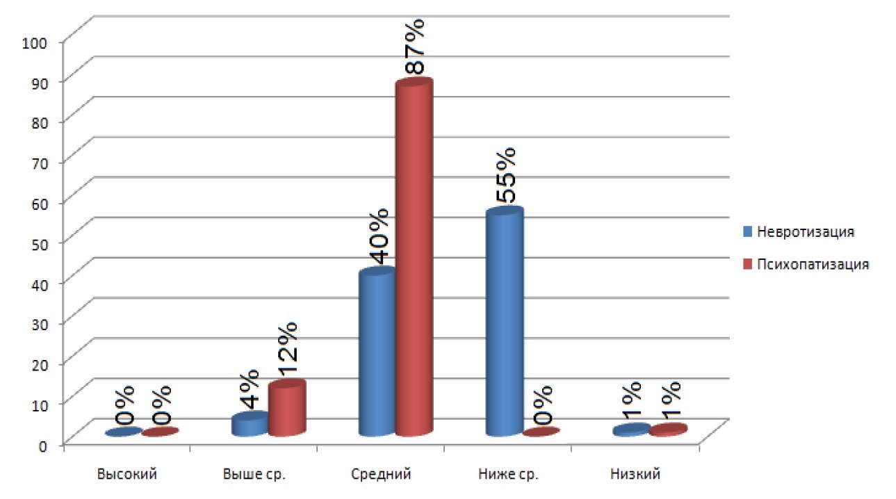 Рис. 4. Показатели невротизации и психопатизации у студентов.