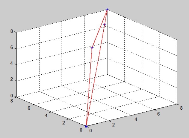 Результат моделирования (рис. 9) показывает, что действительно, движение происходит по предписанной траектории, заданной в таблице 2.