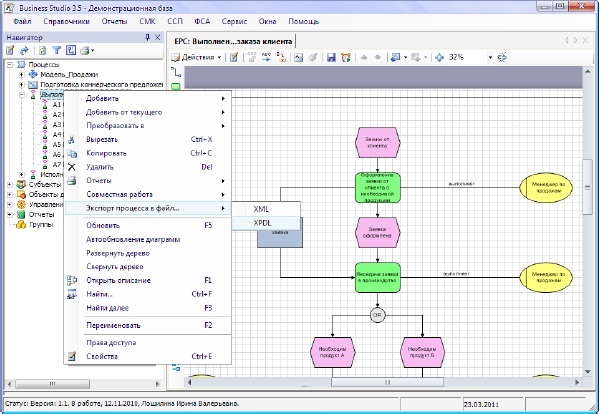 Следующий программный продукт для моделирования бизнес-процессов – Business Studio. Это отечественная программа, специализирующаяся на комплексной работе с бизнес- процессами, а также на формировании различных документов, отчетов, бизнес-моделей и прочего. Данное ПО также очень популярно в российских организациях, ориентированных на процессный подход. Business Studio используется в учебном процессе в более 100 вузах и бизнес-школах России и стран СНГ. В контексте разработки моделей бизнес-процессов Business Studio базируется на методологии SADT (Structured Analysis & Design Technique), в том числе поддерживает такие нотации моделирования бизнес-процессов, как IDEF0, блок-схемы (Process Flowchart, Cross Functional Flowchart), EPC (Event Driven Process Chain).