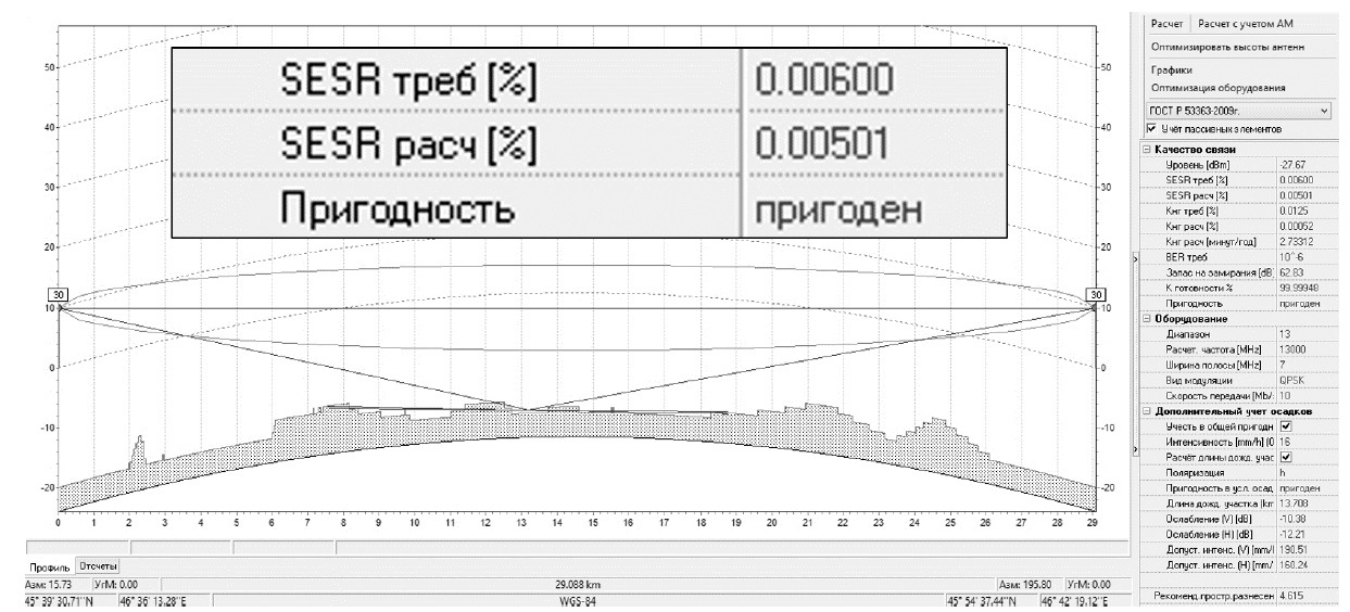 Рис. 4. Расчет пригодности радиорелейного интервала в ONEPLAN RPLS-DB Link.