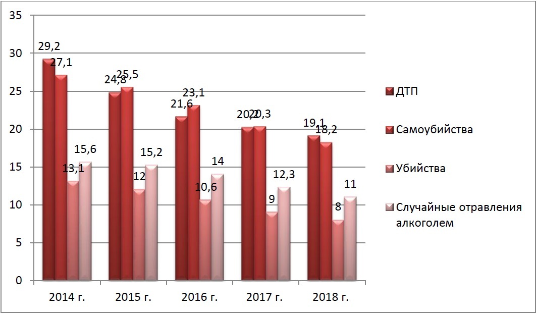 Рис. 1. Смертность от внешних факторов в Российской Федерации в 2014-2018 гг. (тыс. чел.) [4].
