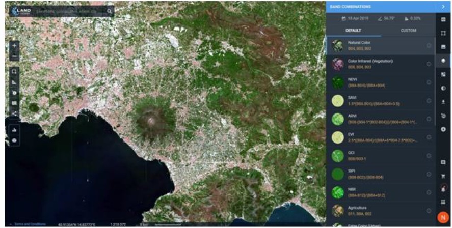 LandViewer сразу включает аналитические возможности визуализации выбранного снимка, что делает сервис уникальным среди многих других платформ. Предлагается более 20 стандартных комбинаций и индексов, в том числе: NDVI, NBR SAVI. Можно создать свой собственный пользовательский индекс, кластеризацию, анализ временных рядов и использовать множество других инструментов для адаптации снимков к заданным потребностям. Можно скачать любой спутниковый снимок с широким спектром каналов или в естественных цветах. Он может быть полным или обрезанным в формате JPEG, KMZ или GeoTIFF. LandViewer – универсальный источник спутниковых снимков для ГИС- специалистов. Ему удается объединить огромный список аналитических функций в аккуратный пакет для исследований. Сервис имеет ограничение и позволяет просматривать и сохранять только 10 изображений в сутки.