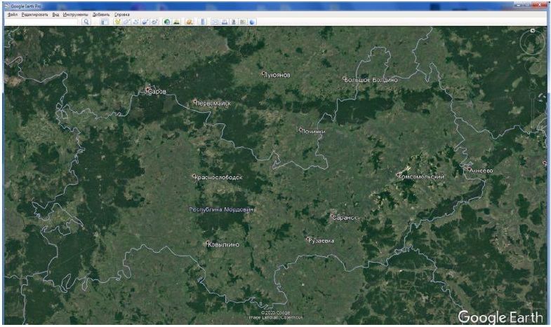 Рис. 4. Территория Республики Мордовия в проекте Google Earth.