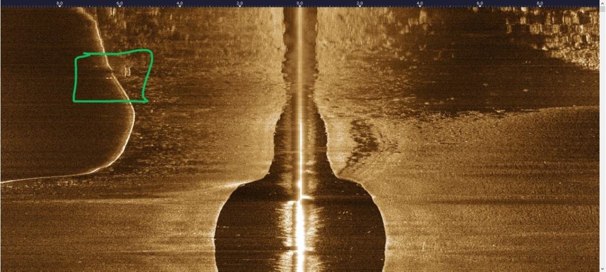 Гидролокатор бокового обзора позволяет получать высококачественное акустическое изображение дна на основе интенсивности отраженного сигнала и применяется для получения отличительных особенностей форм подводного рельефа. Его использование совместно с эхолотом позволяет получить информацию об особенностях рельефа отдельных участков дна водоемов (см. рис. 3).