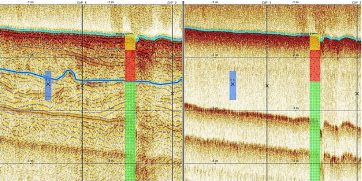 Рис. 4. Вертикальный профиль донных отложений, полученный в результате работы донного профилографа[1].