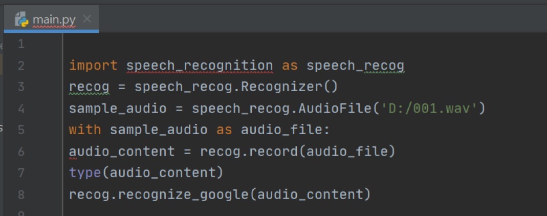 Первый тест по распознаванию текста из аудио файла был сделан с использованием Google Speech API и библиотек SpeechRecognition.