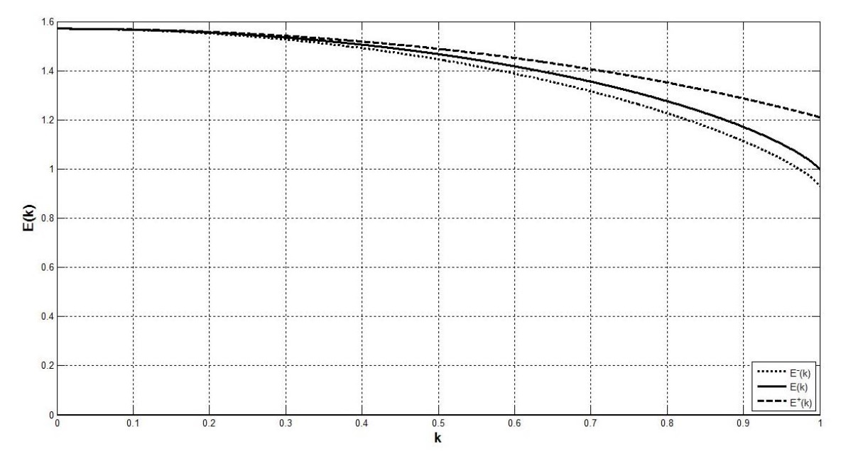 Интегрируя неравенство (8) по модулю эллиптического интеграла от 0 до k , используя свойства интеграла Римана и учитывая, что E(0) = p 2 , получим, что при с функцией (4) в левой части этого неравенства. Справедливость неравенства при k = 0 и k = 1 проверяется непосредственно.