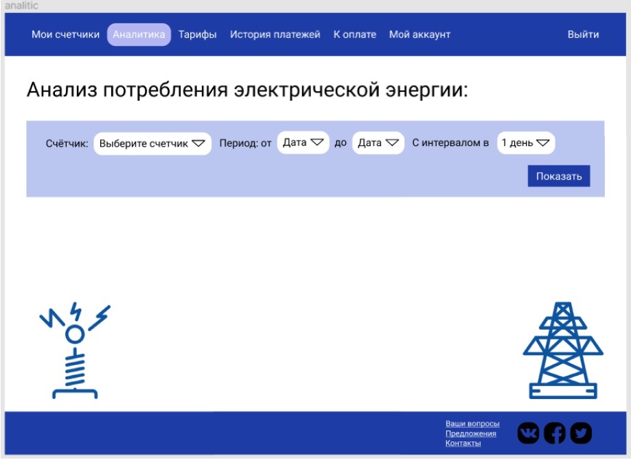 На рис. 4 изображен раздел «Аналитика». В этом разделе можно просмотреть информацию о количестве и динамике потребления электроэнергии в определенный отрезок времени. Для удобства можно выбрать период дискретизации.