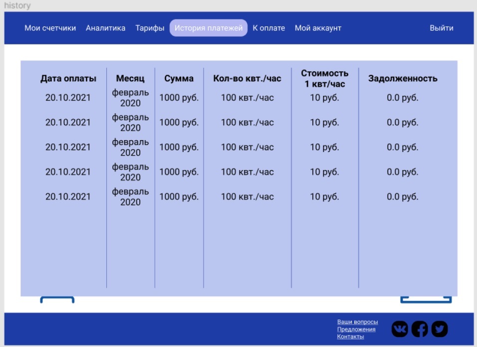 Рис. 6. Раздел «История платежей».