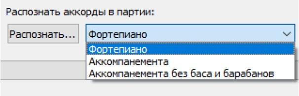 Рис. 12. Выпадающее окно для распознавания аккордов в определенных партиях аккомпанемента.