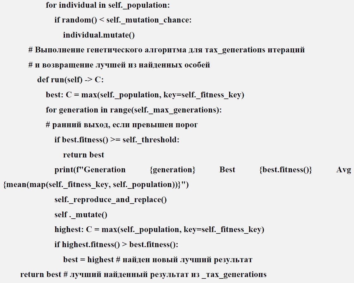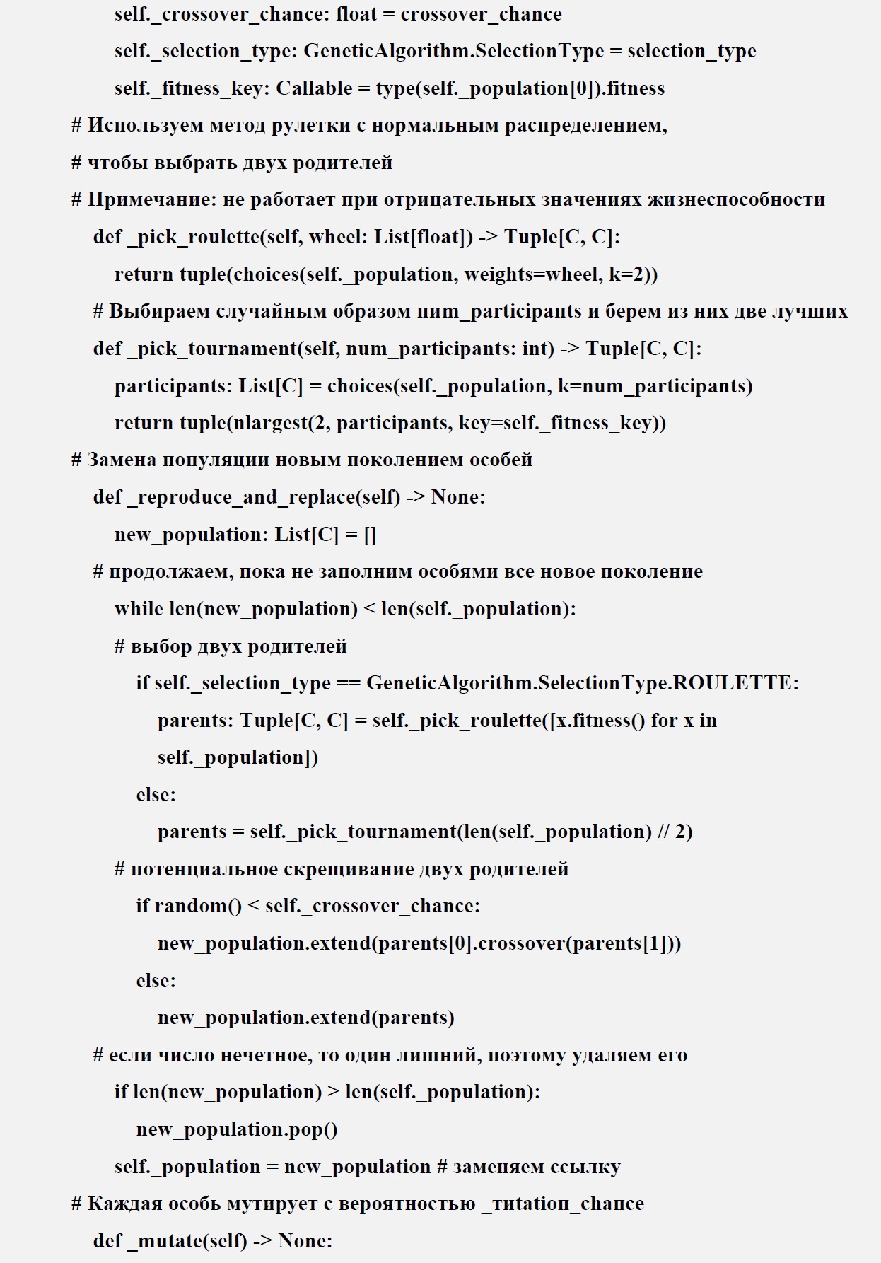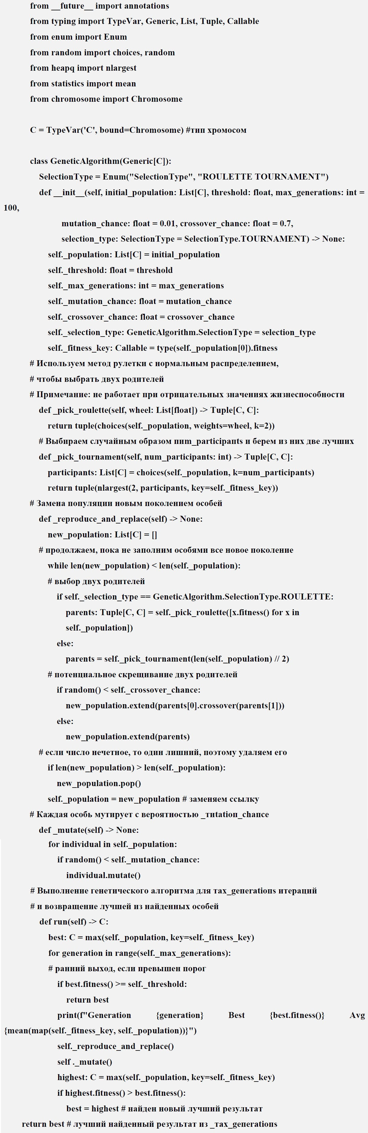 Листинг 1. Реализация генетического алгоритма на языке Pythоn