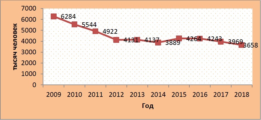 Рис. 1. Динамика количества безработных в Российской Федерации за 2009 – 2018 гг.