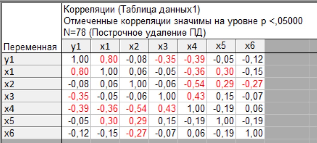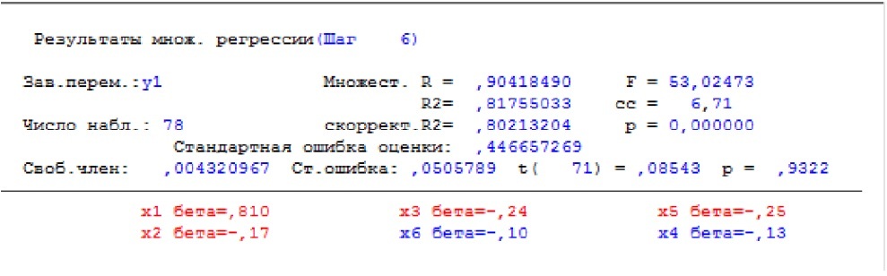 Рис. 3. Результаты корреляционно-регрессионного анализа.