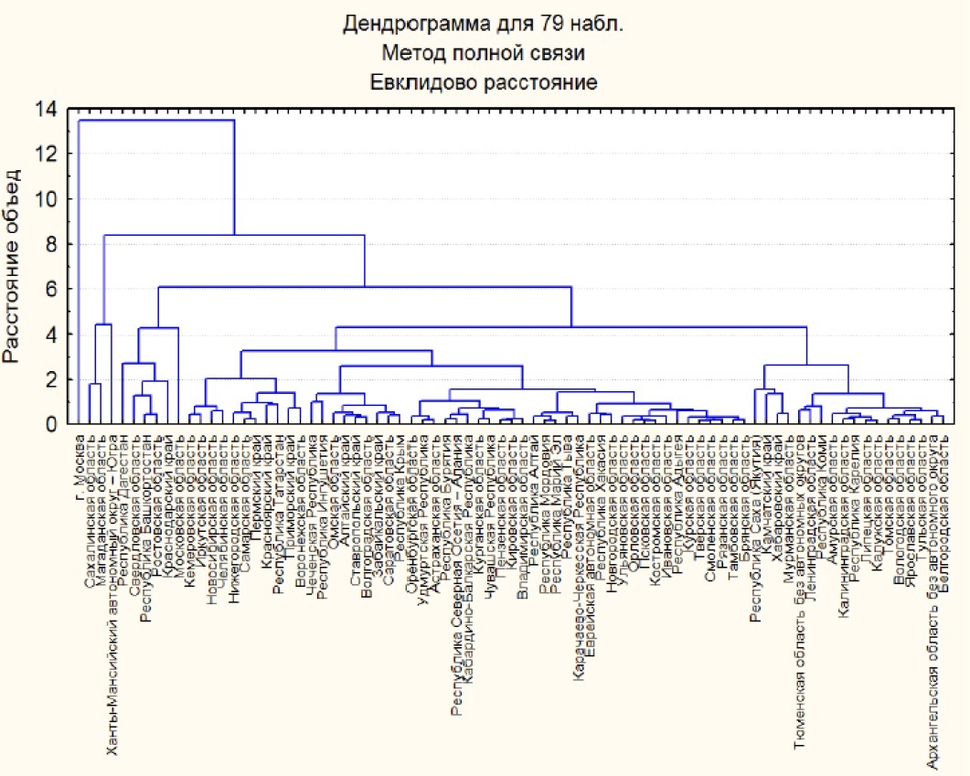 Рис. 5. Дендрограмма факторов безработицы по регионам РФ за 2018 г.