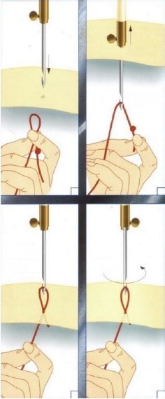 - По рисунку создается аккуратная строчка, отступление от каждого предыдущего прокола – 2-3 мм.