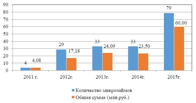 Рис. 3. Динамика выдачи микрозаймов за 2011–2015 гг.