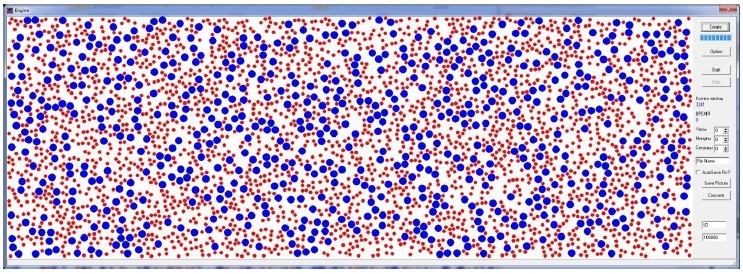 Рис. 1. Интерфейс программного комплекса для моделирования стесненной седиментации частиц наполнителя в процессе отверждения полимерной системы.