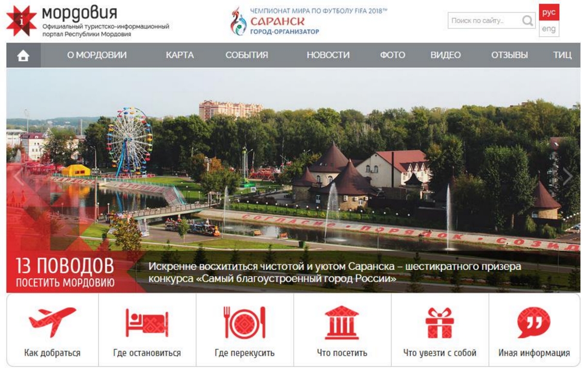 В 2018 г. в Саранске пройдут матчи ЧМ по футболу, и Мордовия примет у себя несколько тысяч гостей со всего мира. В связи с этим возникает потребность в создании единого интернет-ресурса, который будет площадкой для знакомства с основными туристскими ресурсами региона, его рекреационными возможностями и инфраструктурой, станет местом обмена информацией и мнениями. Кроме того, подобный сайт позволит продвигать Республику Мордовия в информационном пространстве, будет способствовать решению важнейшей задачи по повышению конкурентоспособности регионального туристского продукта и привлечению туристов в республику.