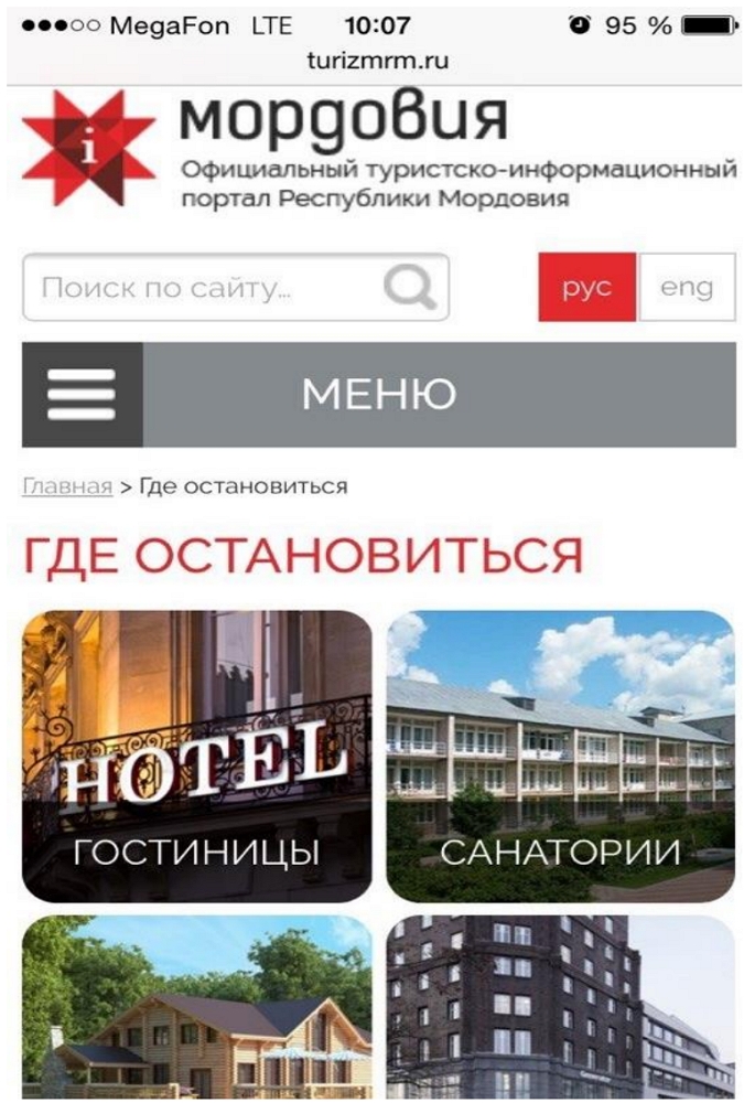Рис. 3. Мобильная версия туристско-информационного портала Республики Мордовия [4].