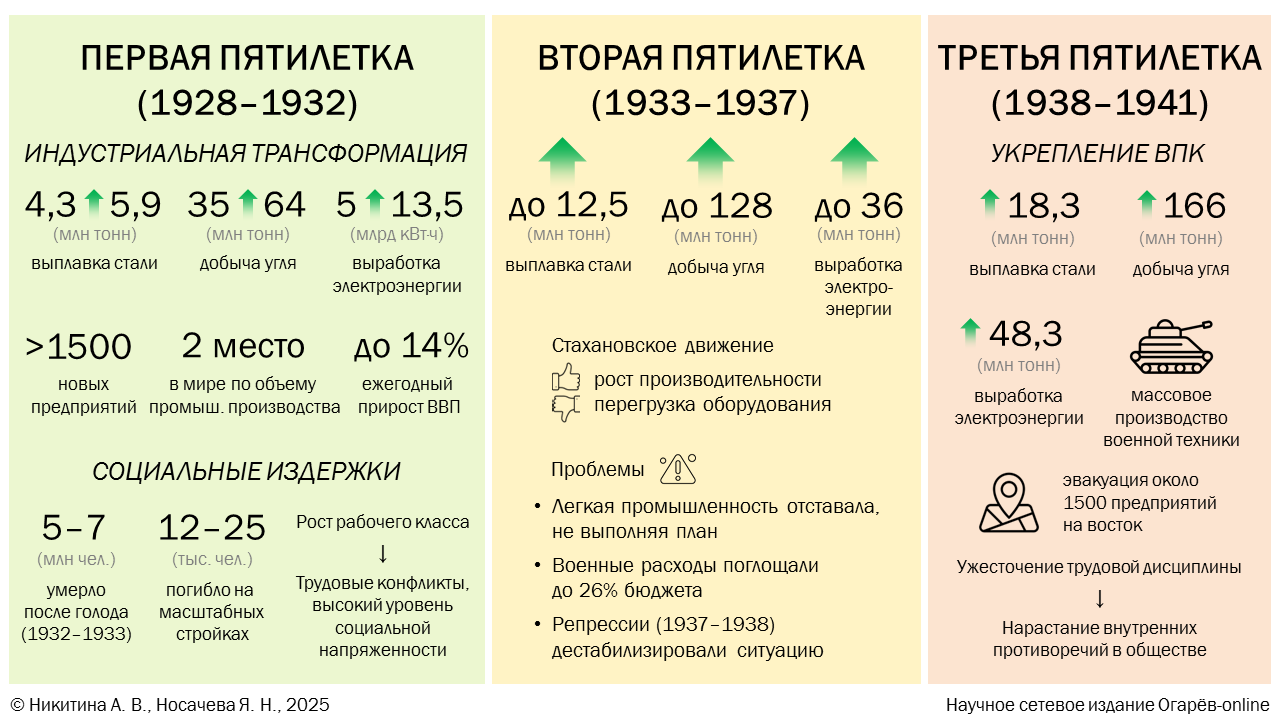 Results. The analysis shows that five-year plans enabled the USSR to transform itself from an agrarian country into an industrial power in the shortest possible time. The first five-year plan (1928-1932) ensured the creation of new industrial centers such as Magnitogorsk and Kuzbass, and also gave impetus to the development of heavy industry.