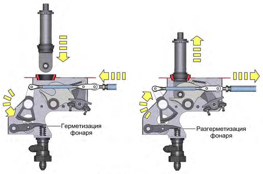 Рисунок 2 – Кинограмма схемы конструкции и работы замка и клапана герметизации фонаря кабины