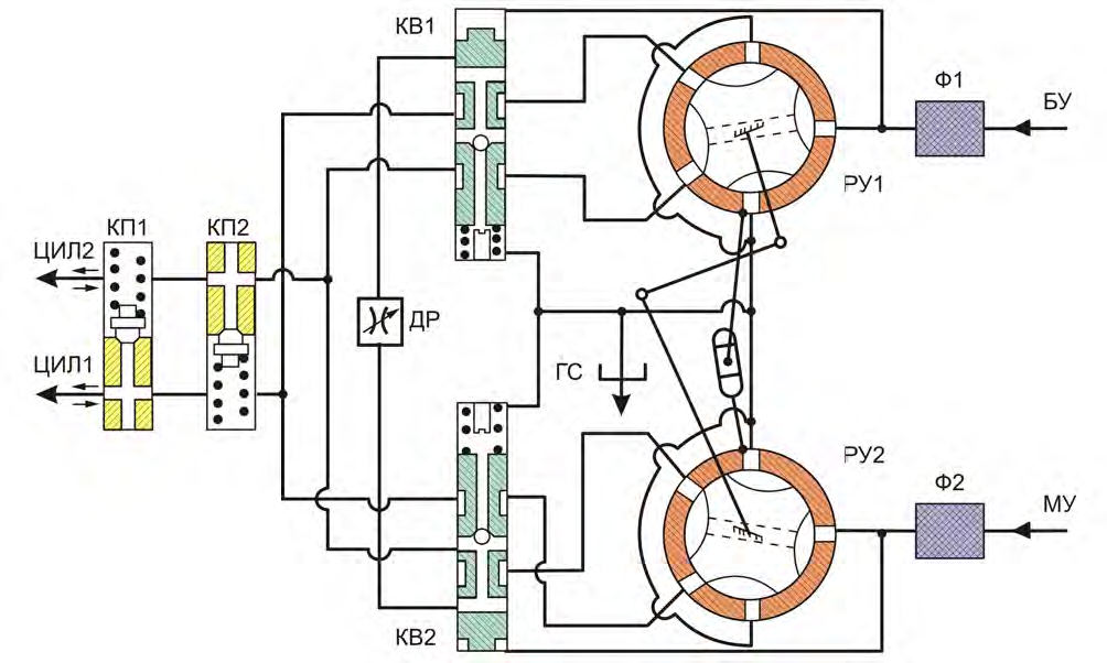 На рисунке 3 показана схема работы системы управления переднего колеса, размещенная в руководстве по технической эксплуатации.