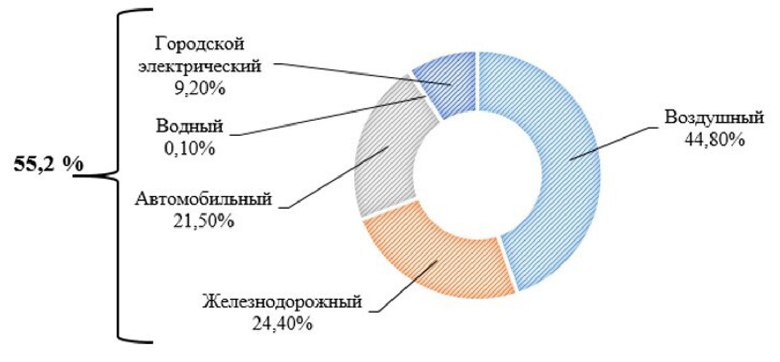 Рисунок 1 – Структура пассажирооборота по видам транспорта в РФ за 2022 г.