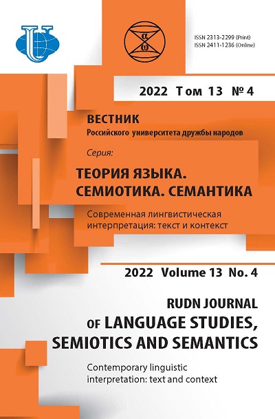 - Выпуск: Том 13, № 4 (2022): СОВРЕМЕННАЯ ЛИНГВИСТИЧЕСКАЯ ИНТЕРПРЕТАЦИЯ: ТЕКСТ И КОНТЕКСТ