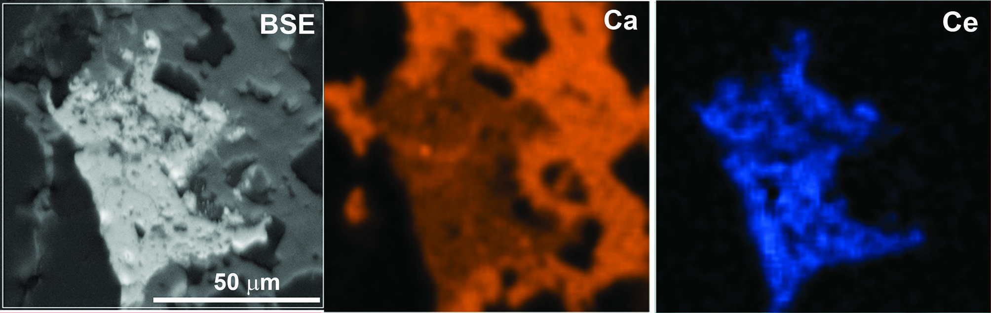 Считается, что концентрирование Th и РЗЭ в прибрежно-морских осадках происходит, в основном, механическим путем с образованием прибрежно-морских россыпей (монацитовых, циркон-ильменитовых и т. д.). В качестве основных минералов-концентраторов РЗЭ и Th в породах сакуканской свиты предполагались детритовые циркон, алланит и ксенотим (Юргенсон, Абрамов, 2000; Абрамов, 2004; 2006). Обогащенность этими минералами слоев железистых песчаников, которые широко распространены в Удоканском бассейне, трактовалась в пользу их совместной аккумуляции в составе естественного шлиха. Установлена положительная корреляция концентраций Au с La и Ce и сделан вывод, что поскольку золото кластогенное, то и Ce с La также накапливаются детритовыми минералами (Абрамов, 2006). Собственные аутигенные минералы радиоактивных и редкоземельных элементов в сакуканской свите ранее описаны не были.