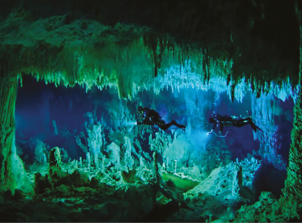 Рис. 1. Субаквальные сталактиты в подводной пещере. Фото из открытых Интернет-источников.