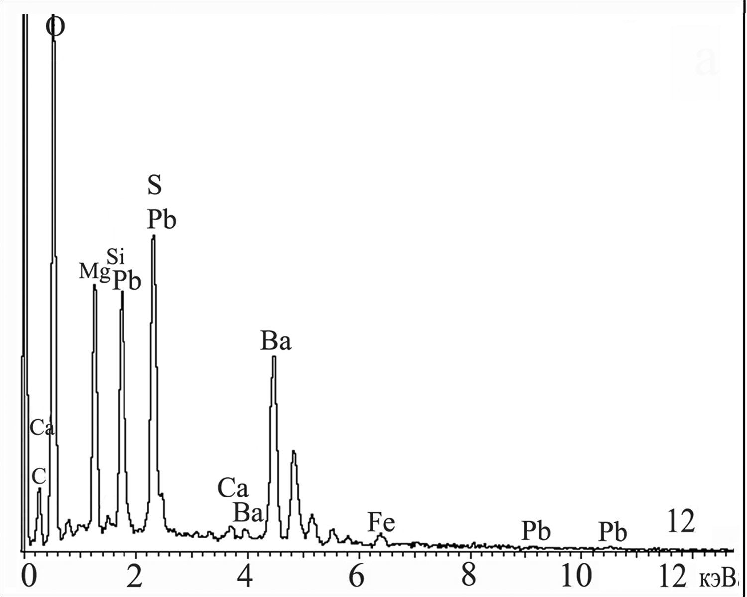 Рис. 6. ЭД-спектр галенита с баритом в серпентине.