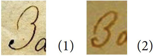 The capital letter “З” in 1854 Dostoevsky's manuscript (1) and in the Siberian Notebook, No. 209 (2)