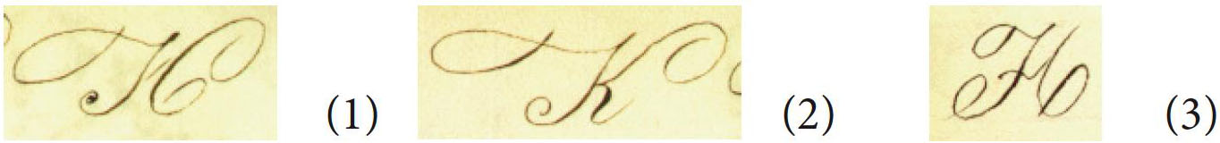 Capital letters “Н” (1), “Х” (2) and Latin “V” (3) in Dostoevsky’s notebooks
