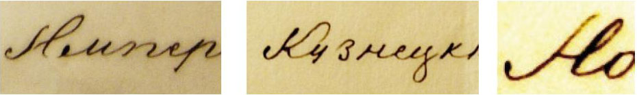 Образцы начертаний прописных букв «И», «К», «Н» из прошения Достоевского на имя императора Александра II