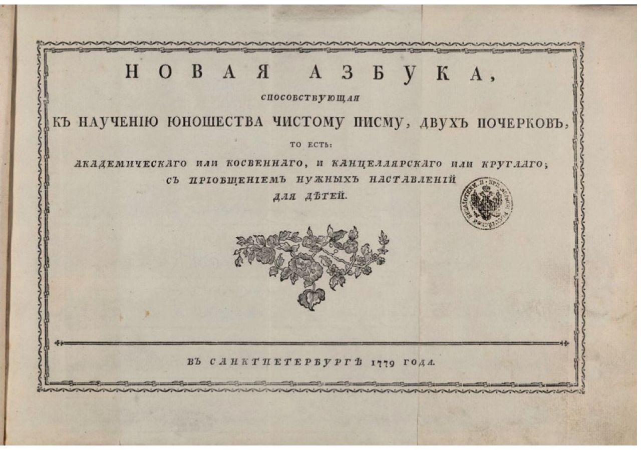 Илл. 1. «Новая азбука, способствующая к научению юношества чистому письму, двух почерков…» (1779)