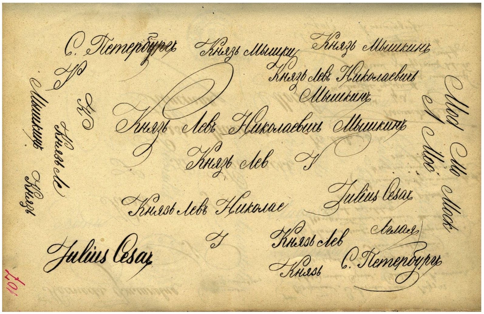 Рассуждения князя Мышкина продолжаются характеристикой русского военно-писарского шрифта: