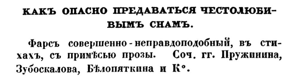 Fig. 9. The title of the short novel How dangerous it is to indulge in ambitious dreams in the Pervoe aprelya almanac (1846)