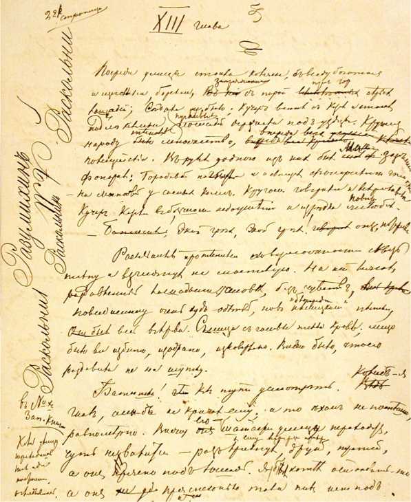Обратимся к рукописям к роману «Преступление и наказание» и попробуем увидеть, что дает для уточнения истории создания этого произведения прочтение каллиграфических прописей, содержащихся в этих текстах.