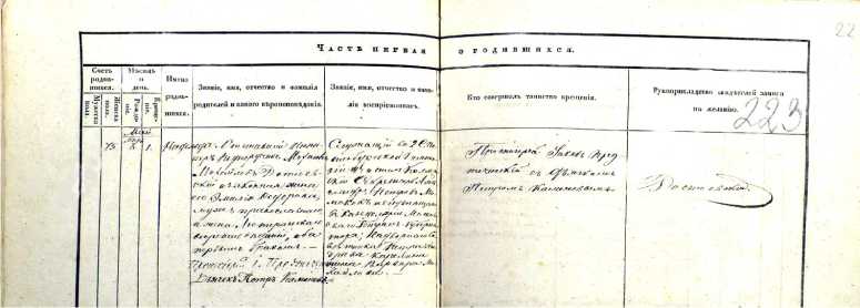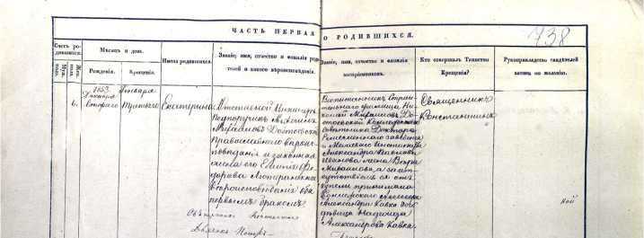 Основываясь на этих данных о примерной дате рождения, известном имени и адресе проживания родителей ребенка (т. е. известной приходской церкви: Входа Господня в Иерусалим на Знаменской площади), можно было приступать к постраничному просмотру метрической книги данной церкви, где и была обнаружена дата рождения и крещения ребенка. Родившаяся 8 марта 1849 г. девочка с символическим именем Надежда была крещена буквально за 4 дня до ареста отца, 1 мая 1849 г., в тревожное для Петербурга время: ночью 23 апреля уже были арестованы два ее родных дяди, Федор и Андрей, отец со дня на день тоже ожидал ареста: