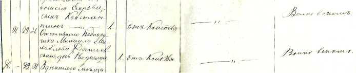 | Февраля Двадцать девятаго. | Втораго. | Отставнаго Инженеръ Подпоручика Михаила Михайлова Достоевскаго сынъ Владиміръ. — | 1. |