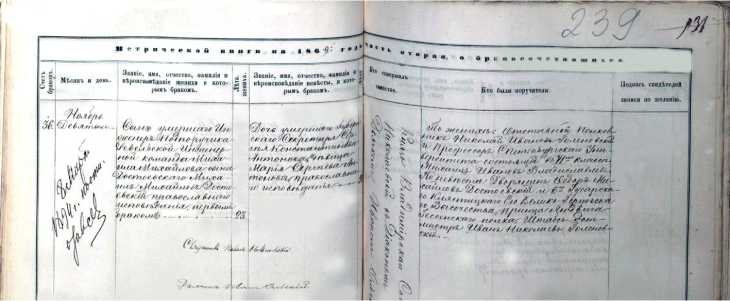 Вѣнчалъ Священникъ Iоаннъ Голубовъ При вѣнчаніи брака находились: Діаконъ Иванъ Карпинъ Діячекъ Стефанъ Рождественскій11 | |||||
