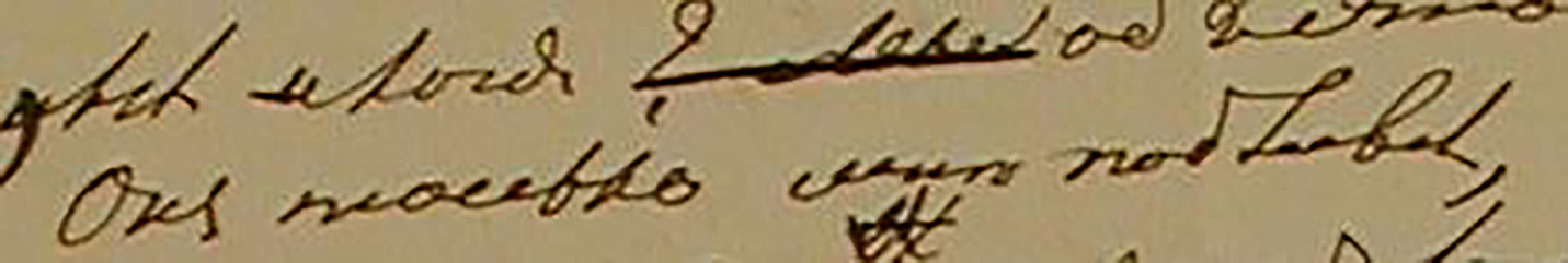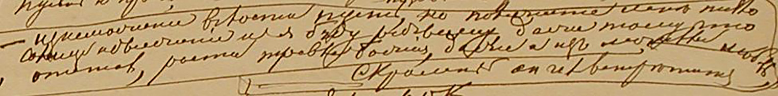 - Вычеркнутая запись-маргиналия (шестая глава второй части):