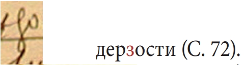 Последний случай интересен тем, что в ЗТ еще дважды встречаются ошибки, связанные с неразличением этого варианта написания строчной «м» (с сильным, высоким начальным завитком), — она будет приниматься за сочетание «см».