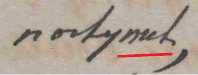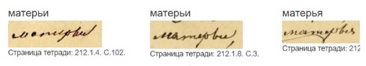 Вариант Д30 «история» должен был бы содержать графические признаки «i», которые отсутствуют в записи Достоевского, и, кроме того, предполагал бы другое графическое начало слова: буква «и» начинается основным штрихом без скругления — в анализируемой записи присутствует начальный широкий «завиток» — петля, типичная для буквы «м». Ср. начертания слов: