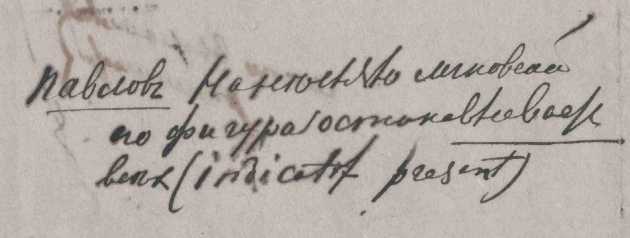 «Павловъ. На нѣсколько мгновенiй его фигура останавливаетъ всѣхъ (indicatif present)» (РГБ. Ф. 93. I. 1. 3/3. Л. 6 об.).