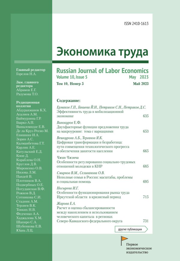 Актуальность проблемы исследования связана с тем, что в последние годы на рынок труда оказывали влияние факторы различной природы, результаты воздействия которых все еще остаются недостаточно изученными: пандемия, цифровизация, санкционная политика, мобилизация. Некоторые из них увеличивали риски технологической безработицы, а другие – структурной безработицы. В статье выявлены основные демографические тенденции в Иркутской области и их влияние на рынок труда: систематическое снижение численности населения и сокращение на этом фоне численности трудовых ресурсов. Автором проанализированы компоненты такой динамики и сделан вывод о том, что это было обусловлено как естественной убылью населения, так и отрицательным сальдо миграции. По результатам исследования было выявлено, что экономический кризис и ситуация неопределенности на рынке труда, вызванная пандемией, повлияла на снижение численности занятого населения Иркутской области, а также вызвала значительный рост общей и регистрируемой безработицы. При этом, заявленная потребность в рабочей силе оставалась достаточно высокой, что позволило сделать вывод о преобладании трудодефицитной конъюнктуры на региональном рынке труда, несмотря на экономический кризис. На основании проведенного исследования автор пришел к выводу, что в 2022 году ситуация стабилизировалась, статистические показатели функционирования рынка труда вернулись к докризисным значениям, что свидетельствует о проявлении адаптационных механизмов регионального рынка труда. Статья может быть интересна специалистам, преподавателям, студентам, занимающимся изучением проблем рынка труда и занятости населения.