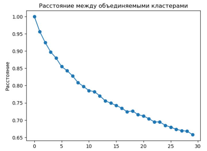 Рис. 3. Оценка расстояния между кластерами на основе косинусного расстояния
