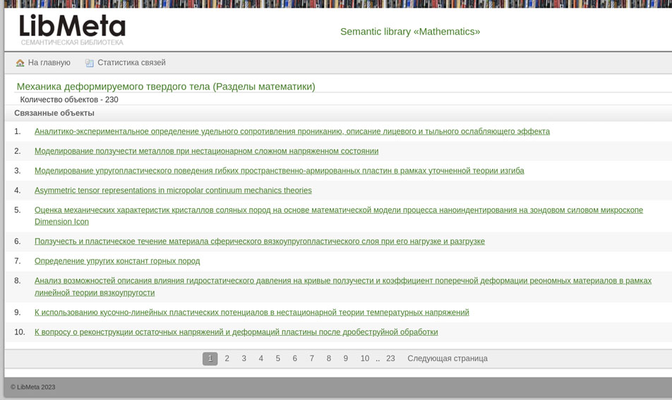 Работа направлена именно на задачу построения ГЗ междисциплинарной ПрО контента журнала (лов) [17, 18]. С этой целью был проведен интеллектуальный анализ поступающих публикаций для определения их тематической принадлежности. Интеллектуальный анализ текстов подразумевает совместную работу специалистов ПрО и средств ИИ. Для описания ПрО привлекается контент семантической библиотеки LibMeta (libmeta.ru) и классические первоисточники, рекомендованные экспертами. Начальное описание ПрО, как семантически связанной структуры данных, опирается на классификаторы УДК, MSC, рубрики журналов, специальности ВАК журналов, специальные словари и предметные указатели монографий.
